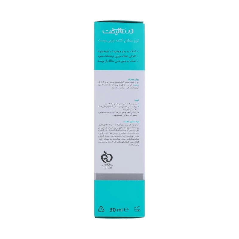 کرم متعادلکننده چربی پوست صورت درمالیفت مدل Sebolift مناسب پوستهای چرب و جوشدار حجم 30 میلی لیتر