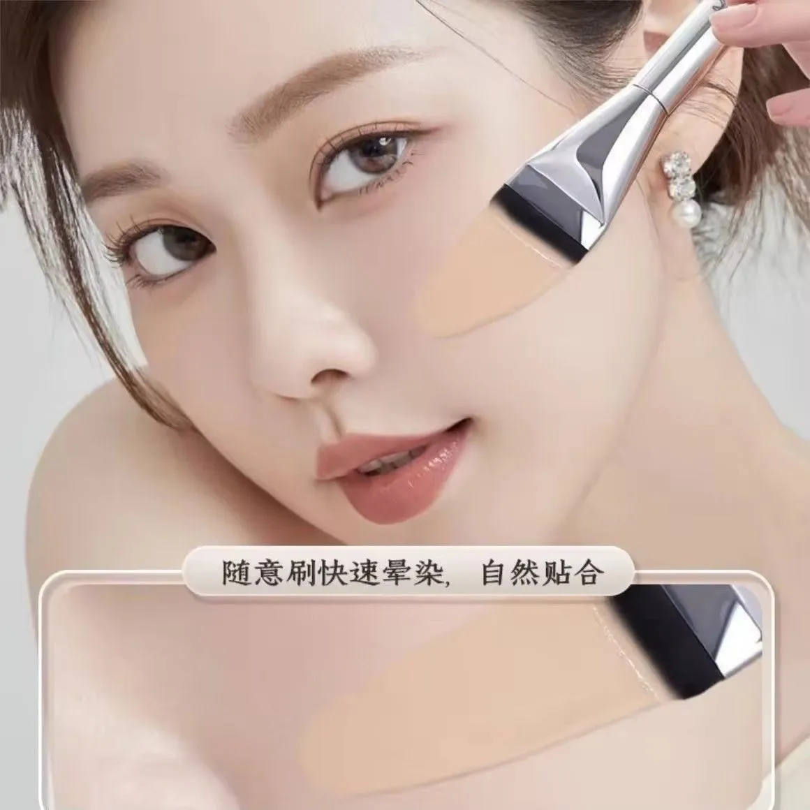 - سَری تخت و فوقنازک: طراحی یکدست و کوتاه براش، کنترل کامل را در دستان شما قرار میدهد. این فرم خاص باعث میشود کرمپودر بهصورت یکنواخت و بدون رد براش روی پوست پخش شود، بدون هیچگونه سنگینی یا ماسیدگی.