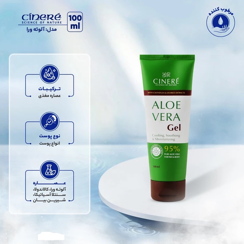ژل مرطوبکننده صورت و بدن سینره مدل آلوئهورا مخصوص همه انواع پوست، حجم 100 میلی لیتری
