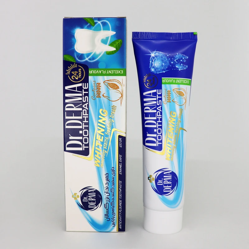 خمیردندان حاوی سفید کننده گیاهی دکتر درما مدل پاپایا حجم 120 گرم، یک محصول مراقبت از دهان و دندان با فرمولاسیون پیشرفته و طبیعی است که به طور تخصصی برای سفید کردن دندان ها، حفظ سلامت لثه و ایجاد حس تازگی طولانی مدت در دهان طراحی شده است. این محصول با ترکیب موثر آنزیم طبیعی پاپایا و سایر عصاره های گیاهی، لکه های سطحی دندان را به آرامی و بدون آسیب به مینای دندان از بین می برد.