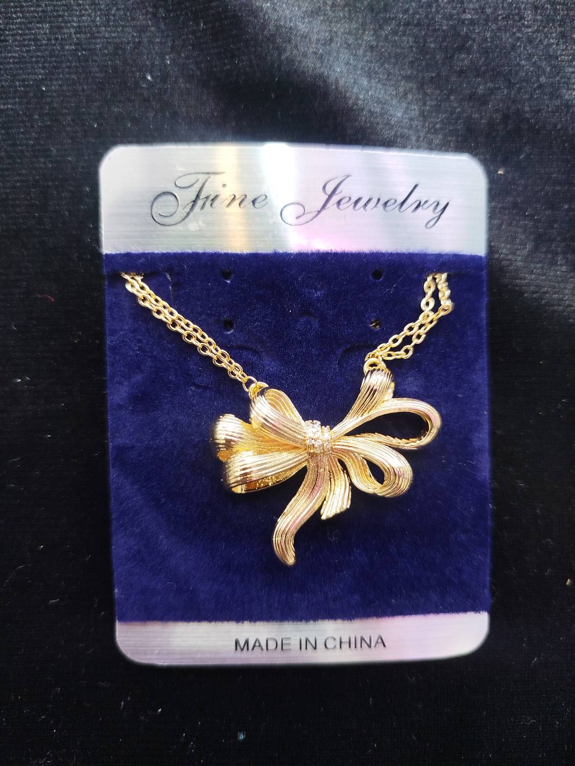 طراحی منحصربهفرد پاپیونی: پاپیون نماد زنانگی و ظرافته. این مدلِ خاص، با خطوط پرجزئیات و یه نگین درخشان مرکزیش، جلوهای فوقالعاده روی گردن داره.