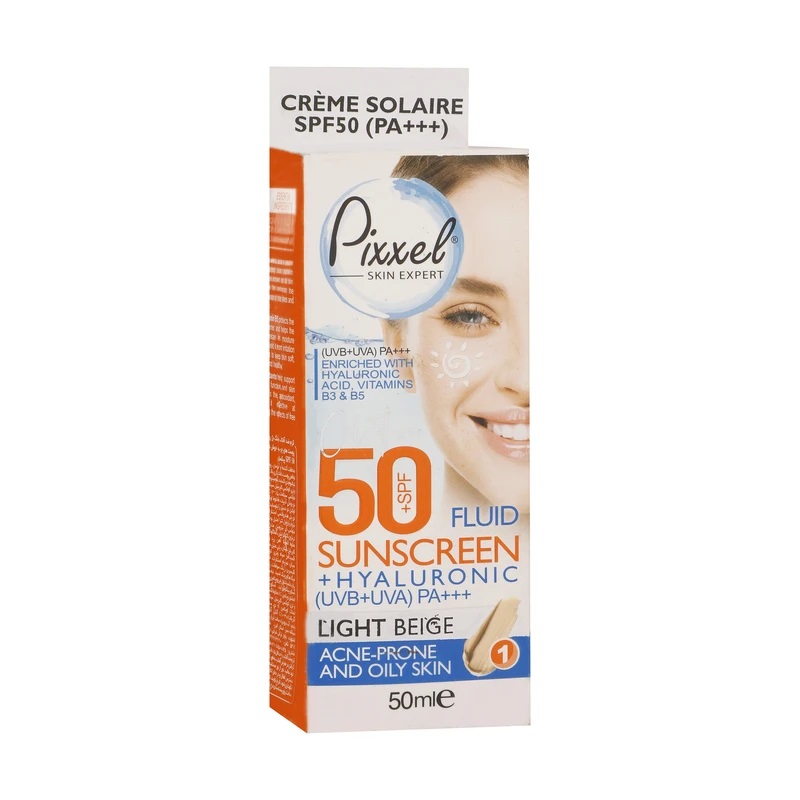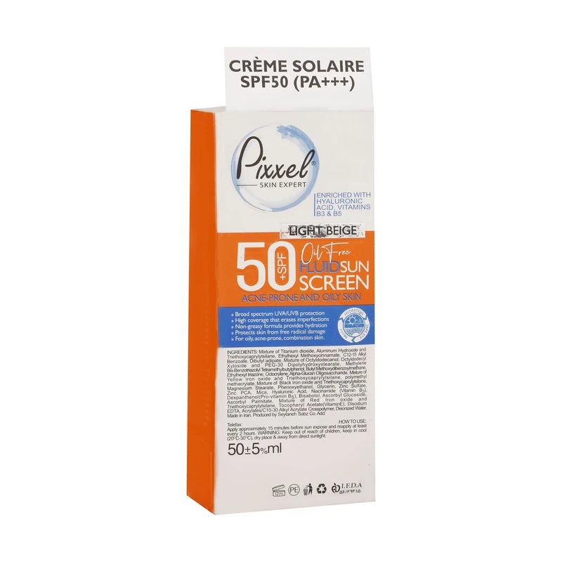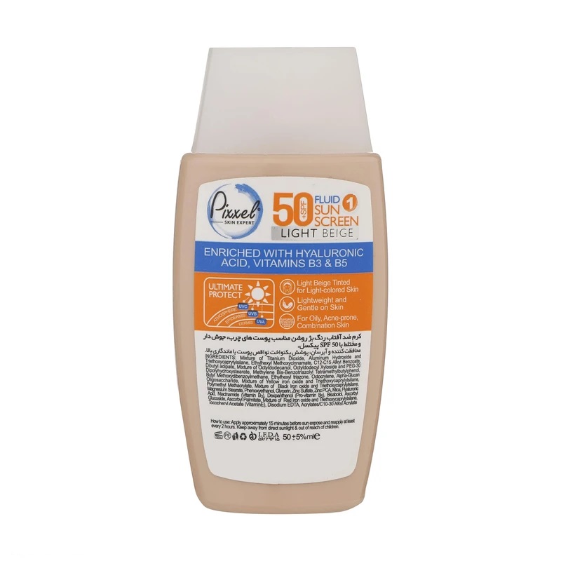 کرم ضدآفتاب فلوئیدی رنگی بژ روشن صورت پیکسل حجم 50 میلیلیتر مناسب پوستهای چرب و جوش دار و مختلط