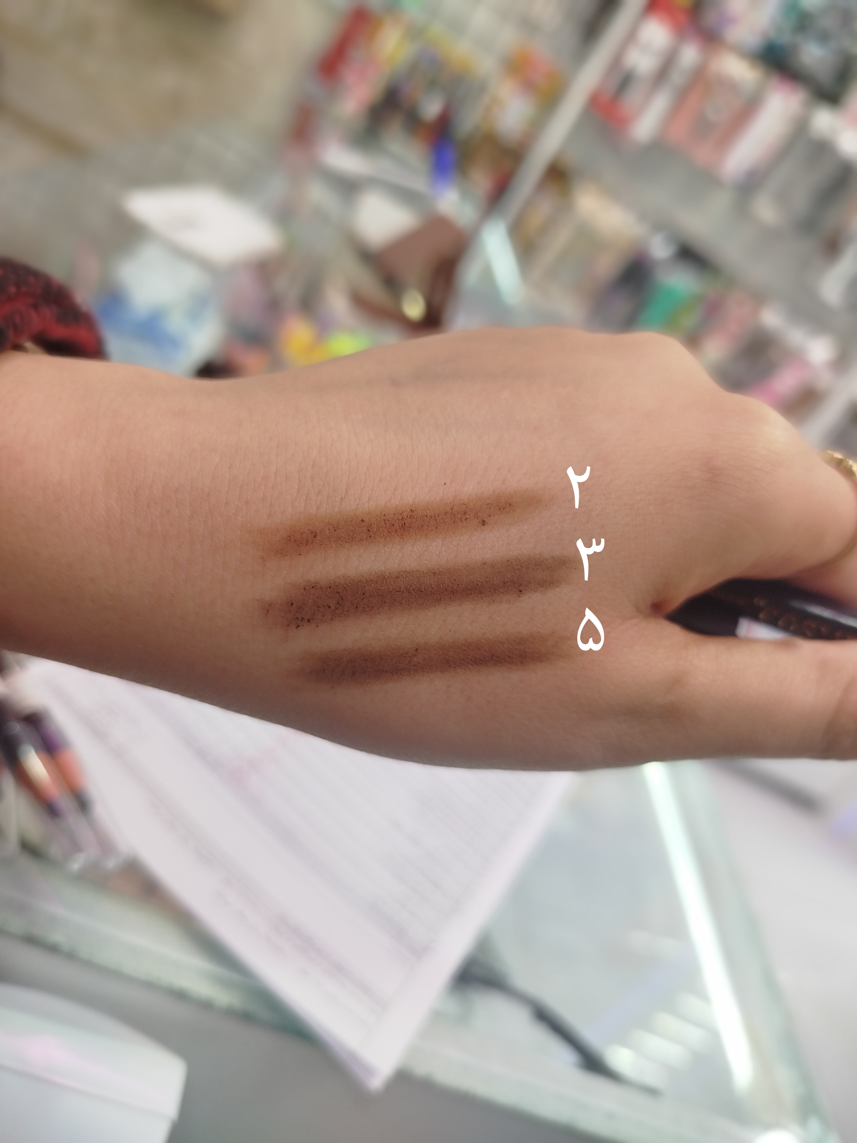 : معمولاً در رنگهای قهوهای، مشکی و سفید عرضه میشود؛ رنگ سفید برای طراحی لب و رنگ مشکی برای خط چشم نیز کاربرد دارد.