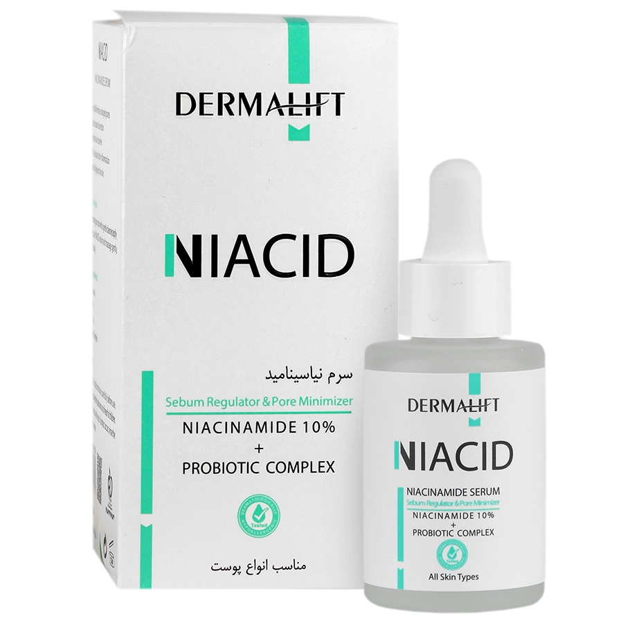 سرم حاوی نیاسینامید درمالیفت مدل نیاسید مناسب انواع پوست حجم 30 میلی لیتر